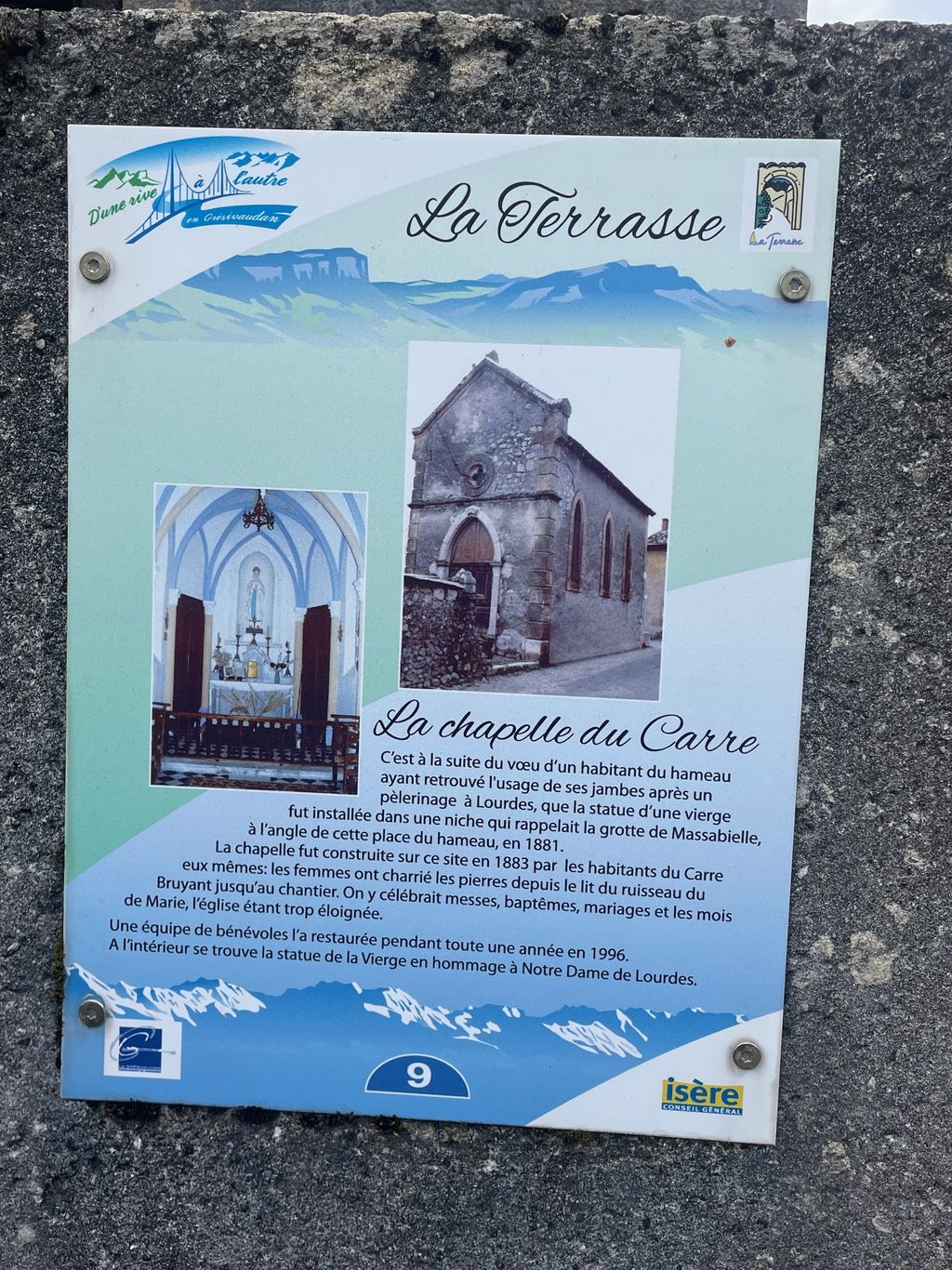 Sortie à La Terrasse, parcours en boucle de 5.6 Km qui mène près du château du Carré puis sur les hauteurs de La Terrasse et retour le long d’un ruisseau. Pour retrouver le parcours, cliquer ici.