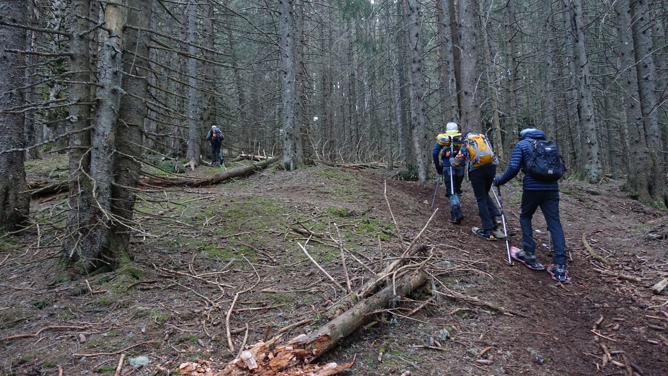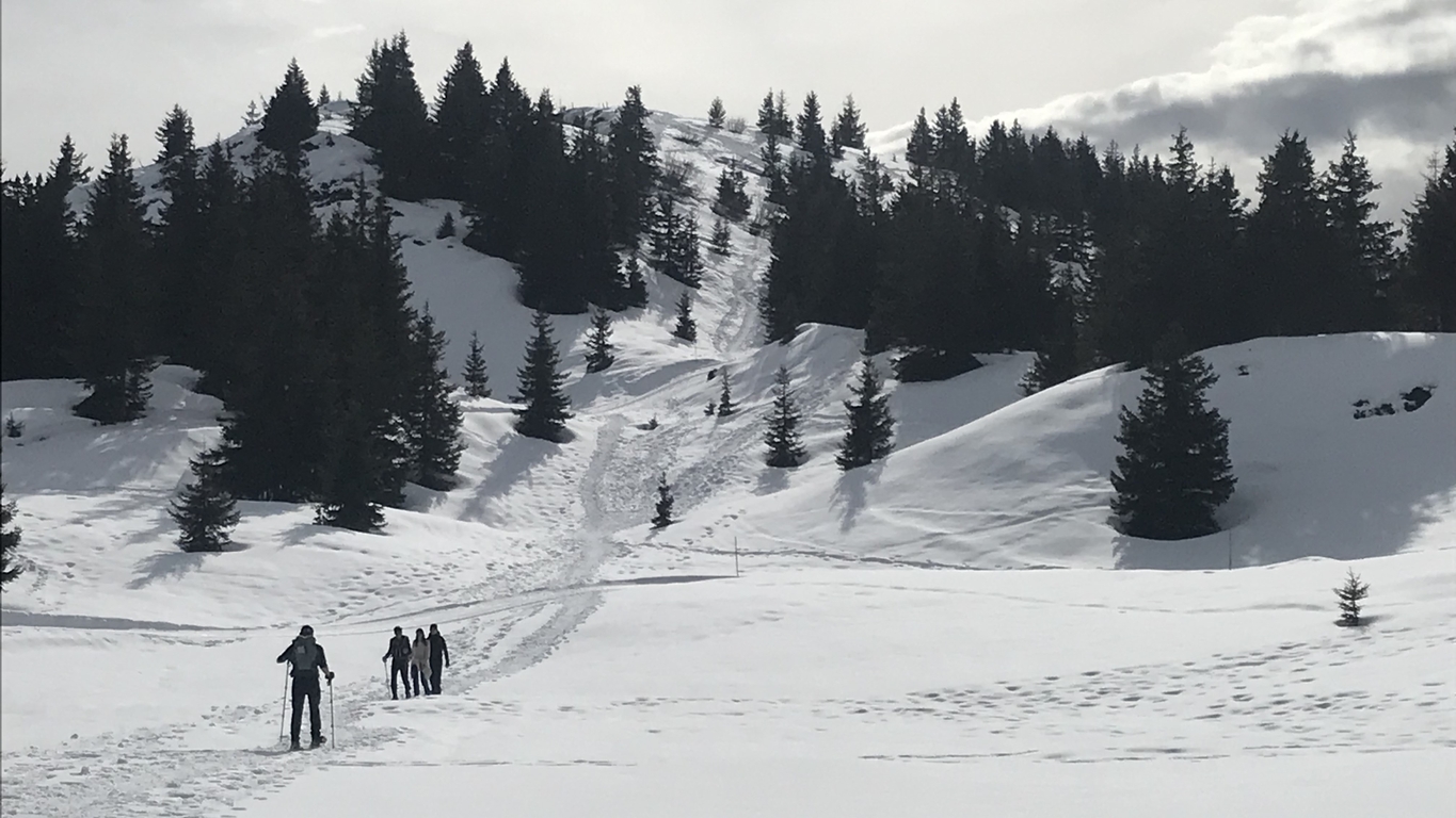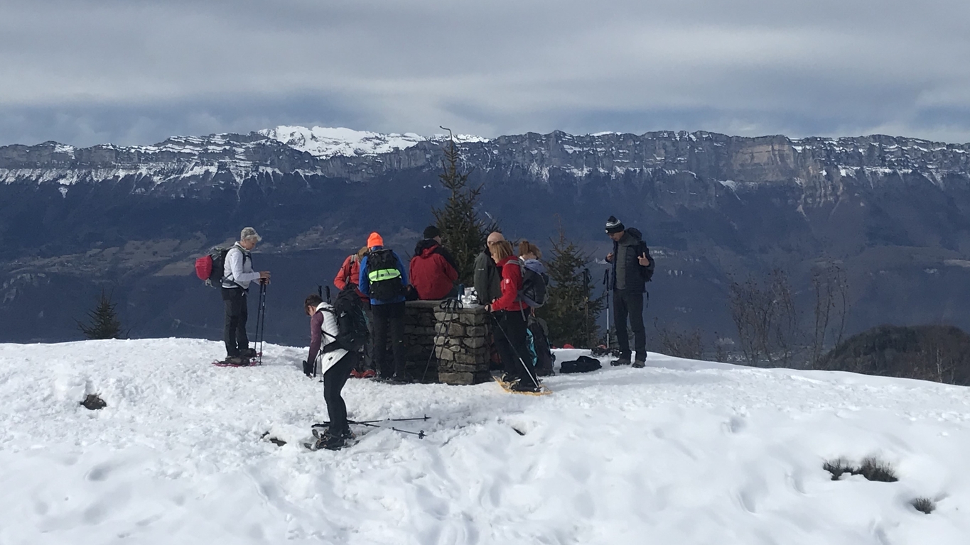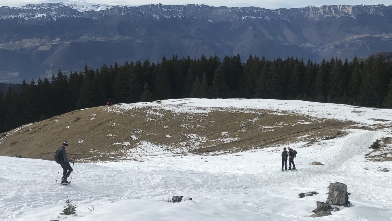 Après une montée en sous-bois à pied sec, enfin la neige à partir du Chalet de Pierre Roubet. Pause déjeuner au belvédère du Crêt du Poulet puis ascension du Crêt Luisard avant la redescente vers le foyer de fond du Barioz pour un vin chaud bien mérité